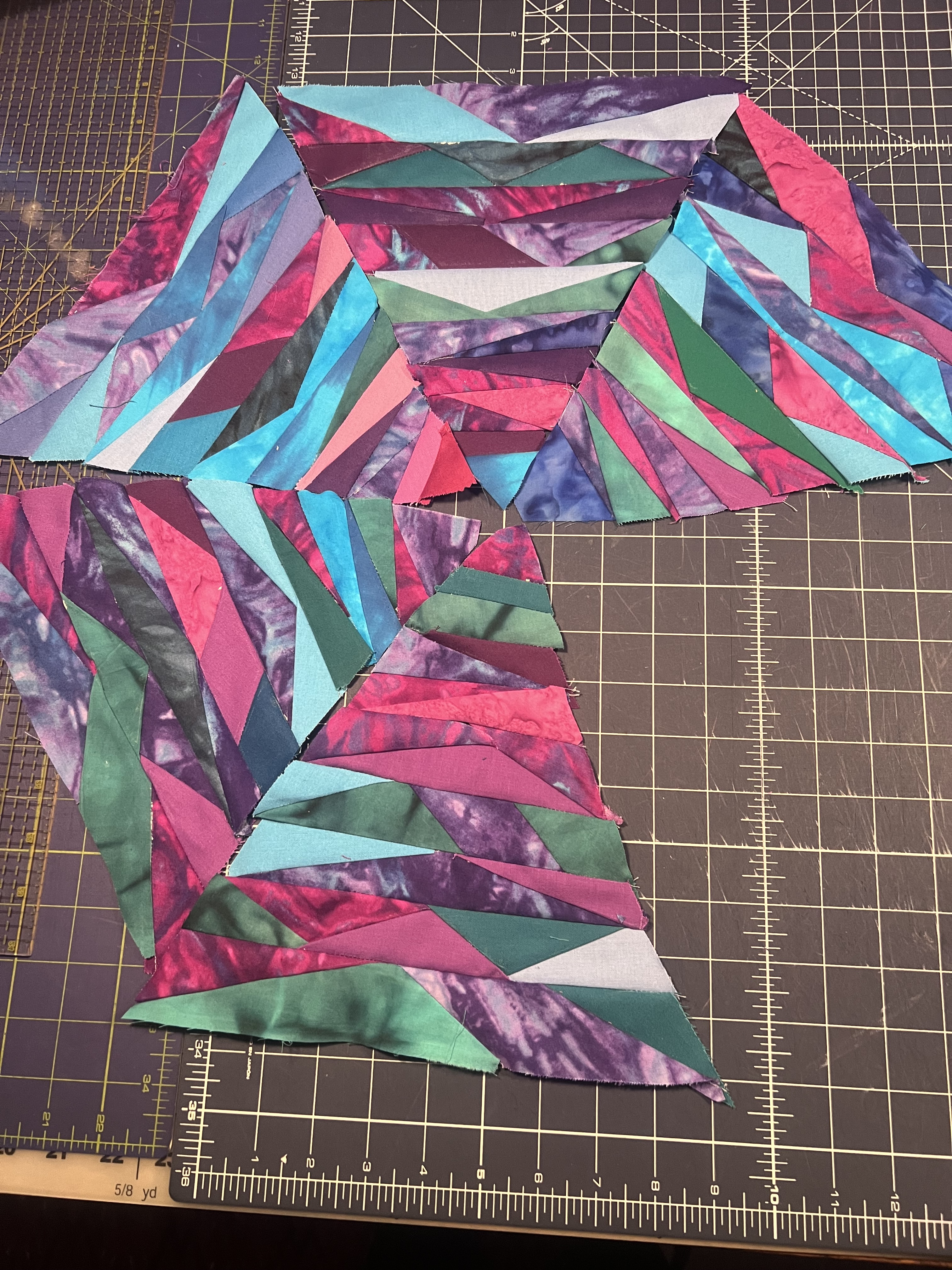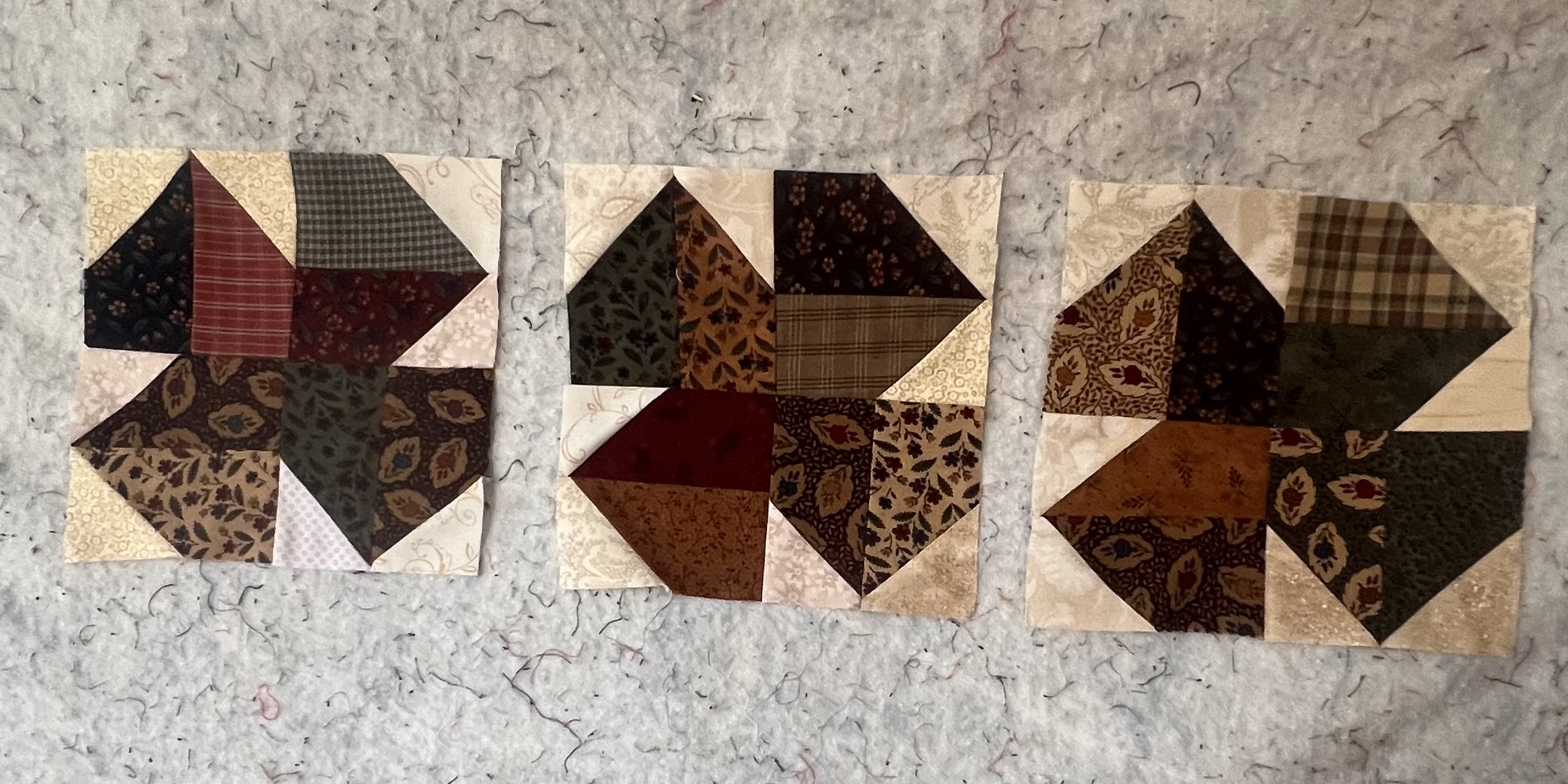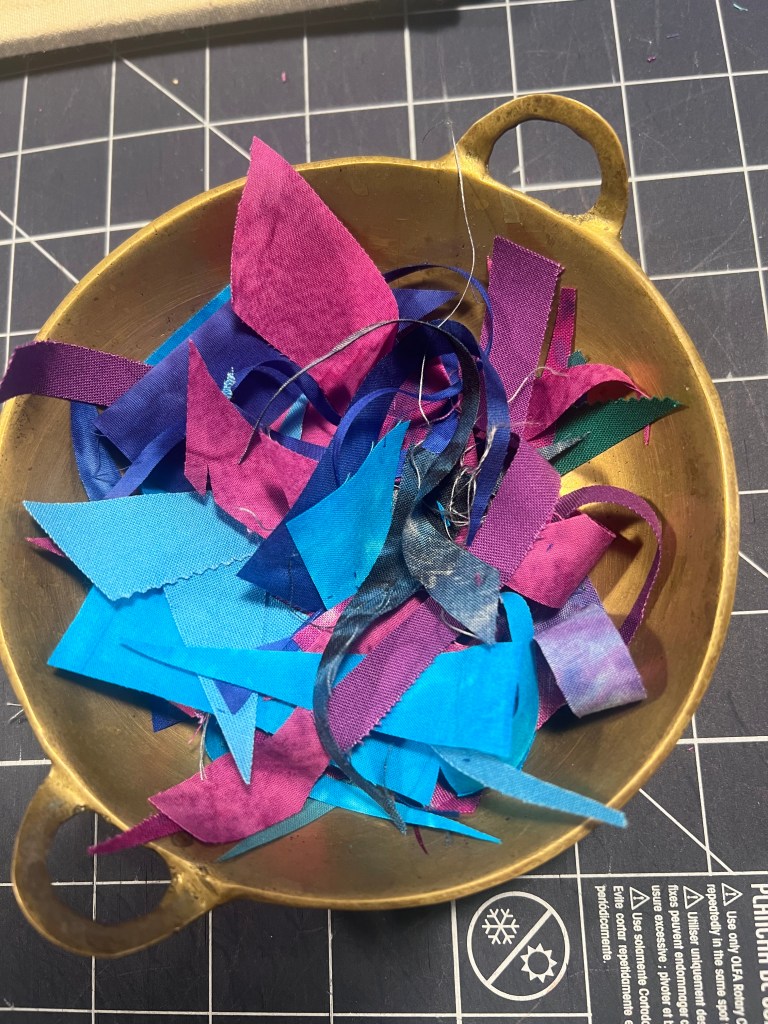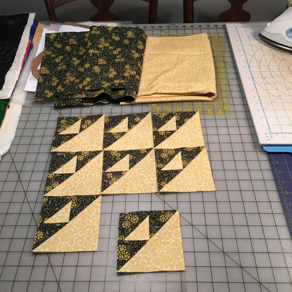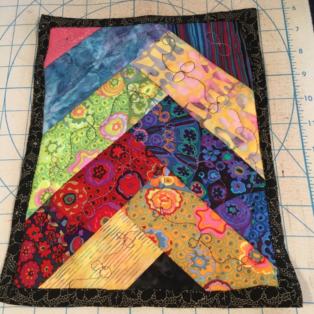 I made this piece for my sister Sylvia who is a serious birder. Using a technique called Paper Piecing, I fashioned birds soaring. It was fun to do, and my sister was so pleased. Out of the leftovers, I made another small piece.