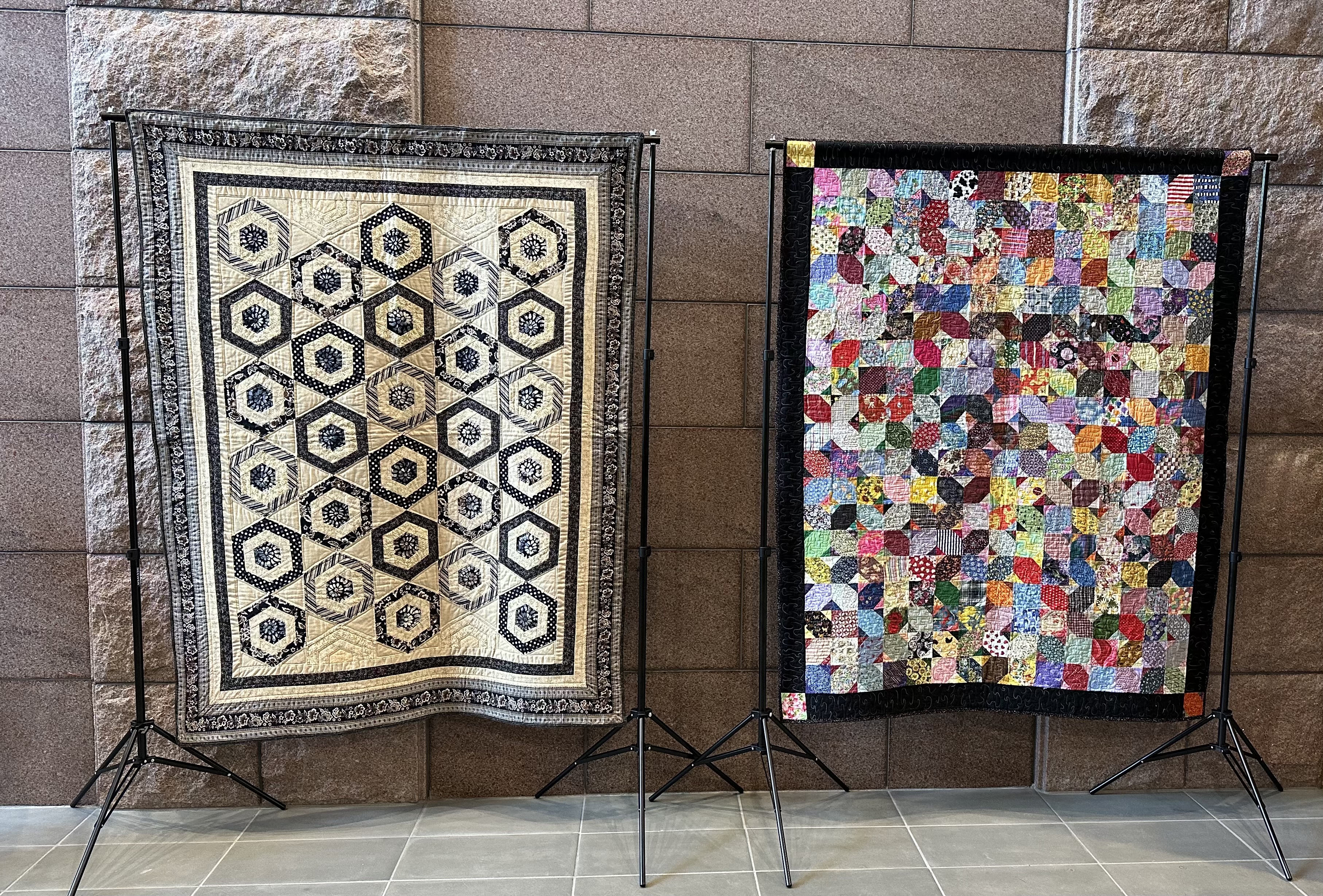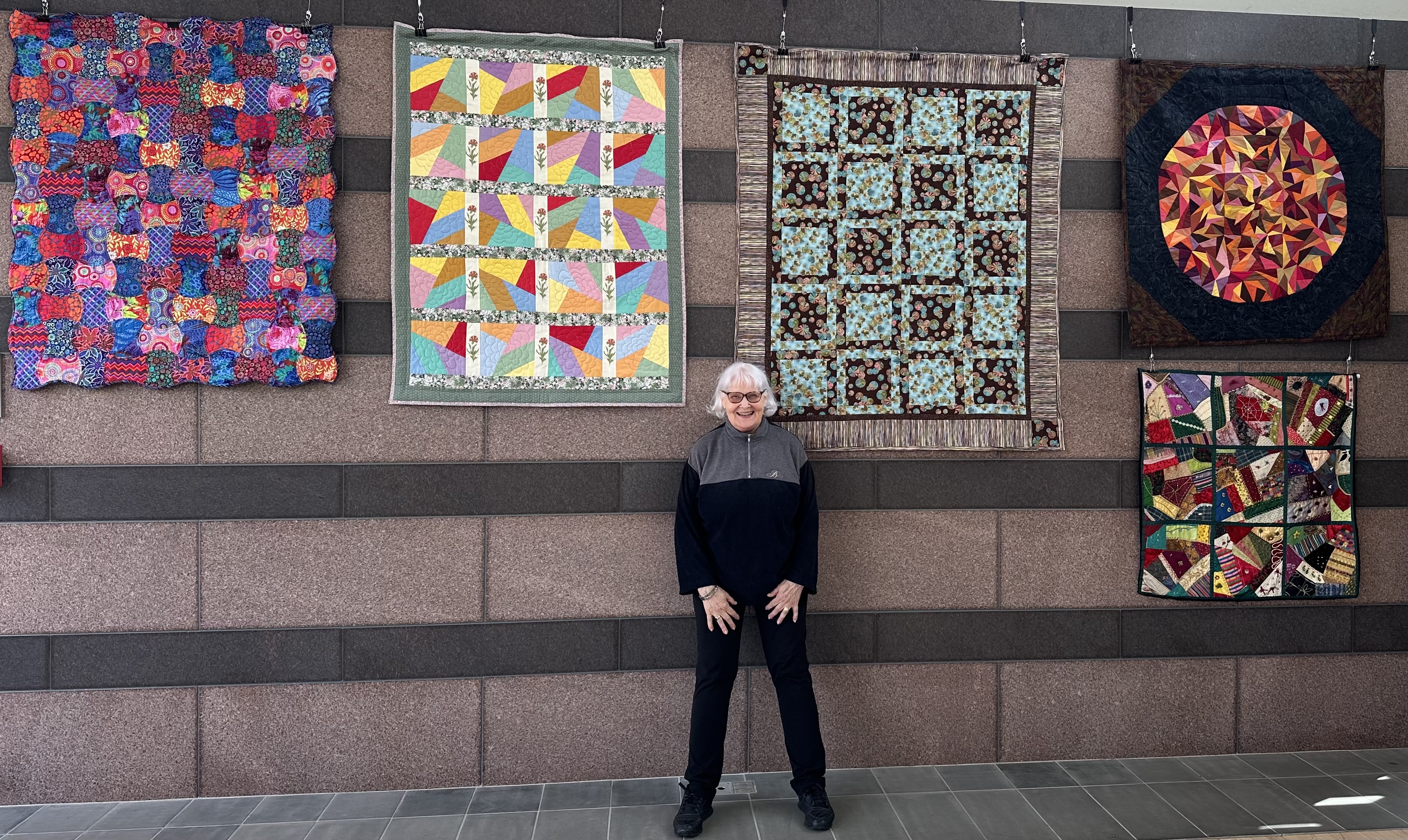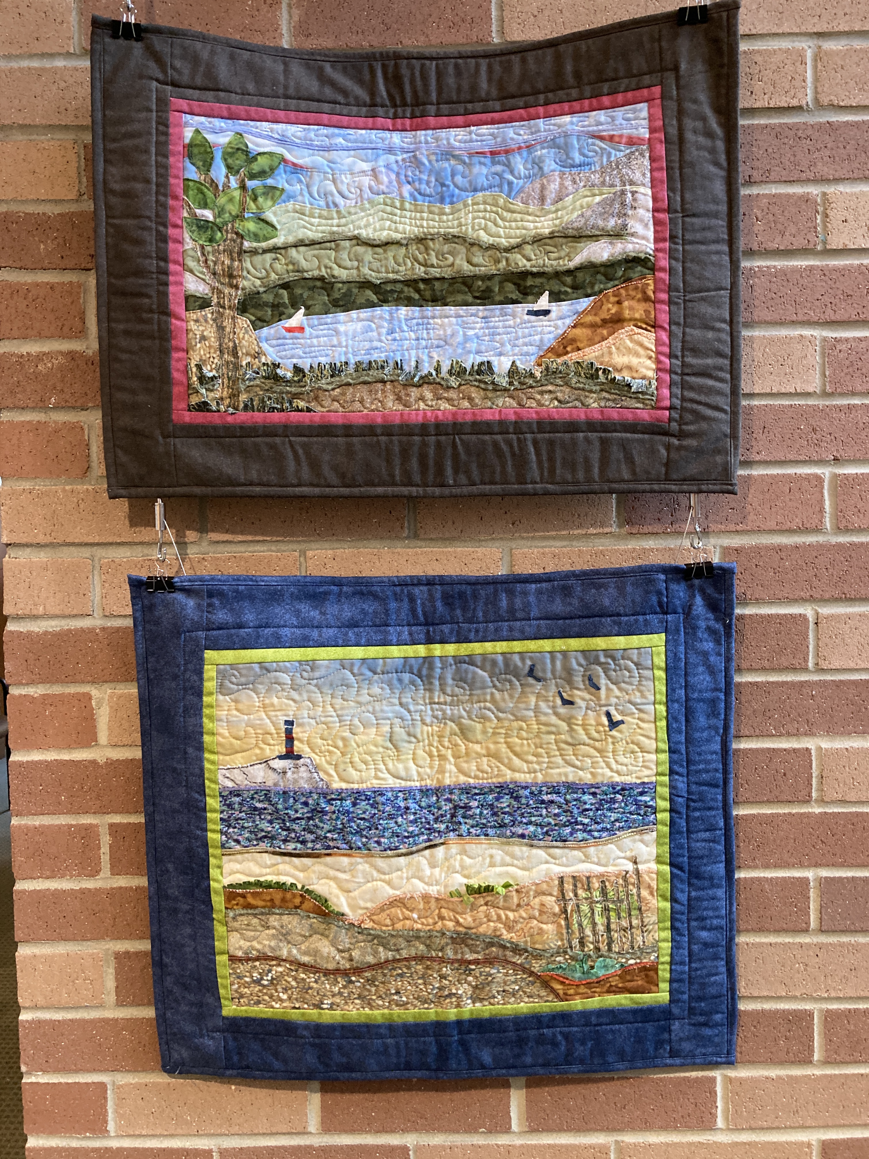 I was honored to be invited to have a month-long exhibition of my art quilts at the Center at Maple Grove, in Kew Gardens, NY during April 2025. The venue is modern, spacious, and well lit with natural and incandescent light. I had lots of help mounting the twenty-five quilts: my daughter Larisa and her family from California, local artist friend Jennifer Lambert, Jennifer Hayes, and Helen Day and Carl Bellinas of the Center. Here are some photos of the exhibit!