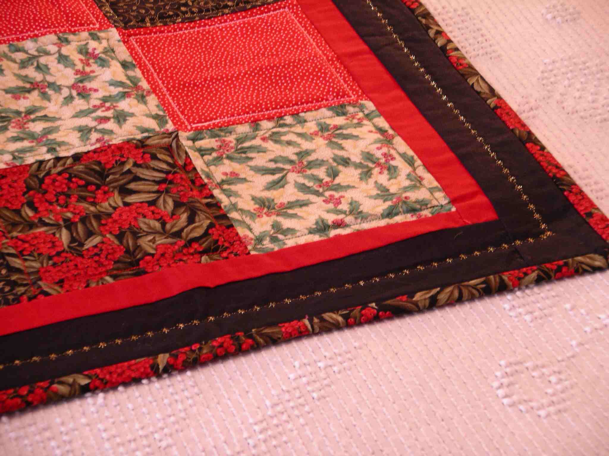 Gold thread and a machine-selected decorative stitch brightens the black border
