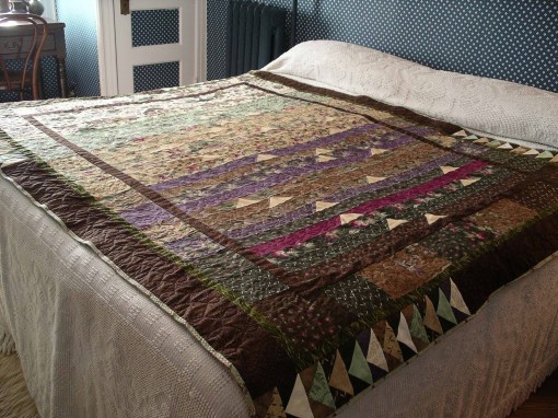 The gradation of colors from dark at the bottom to light at the top give the feeling of a landscape. The quilting in each band was done with matching thread.