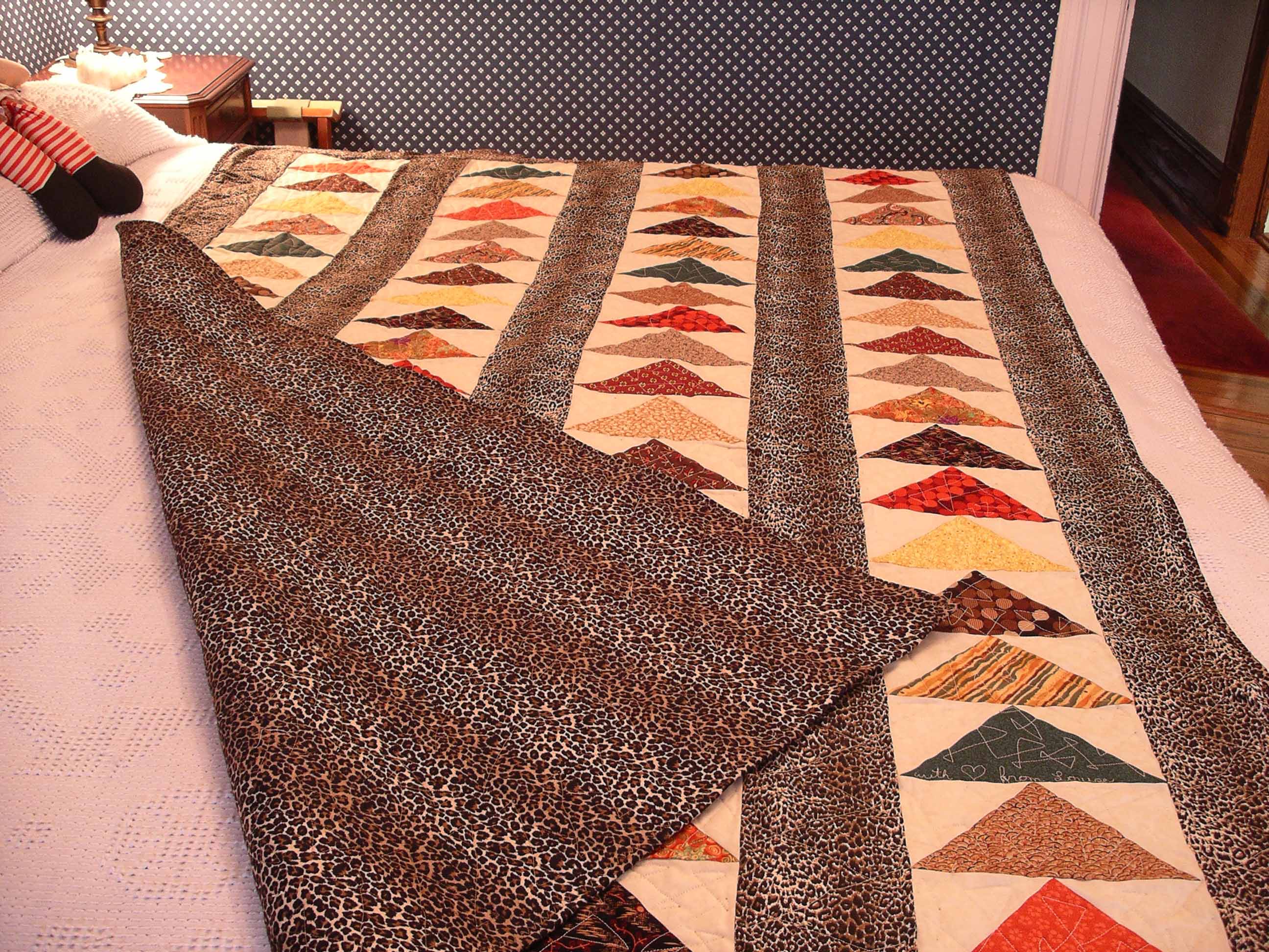 The animal print for the backing makes it a reversible quilt.