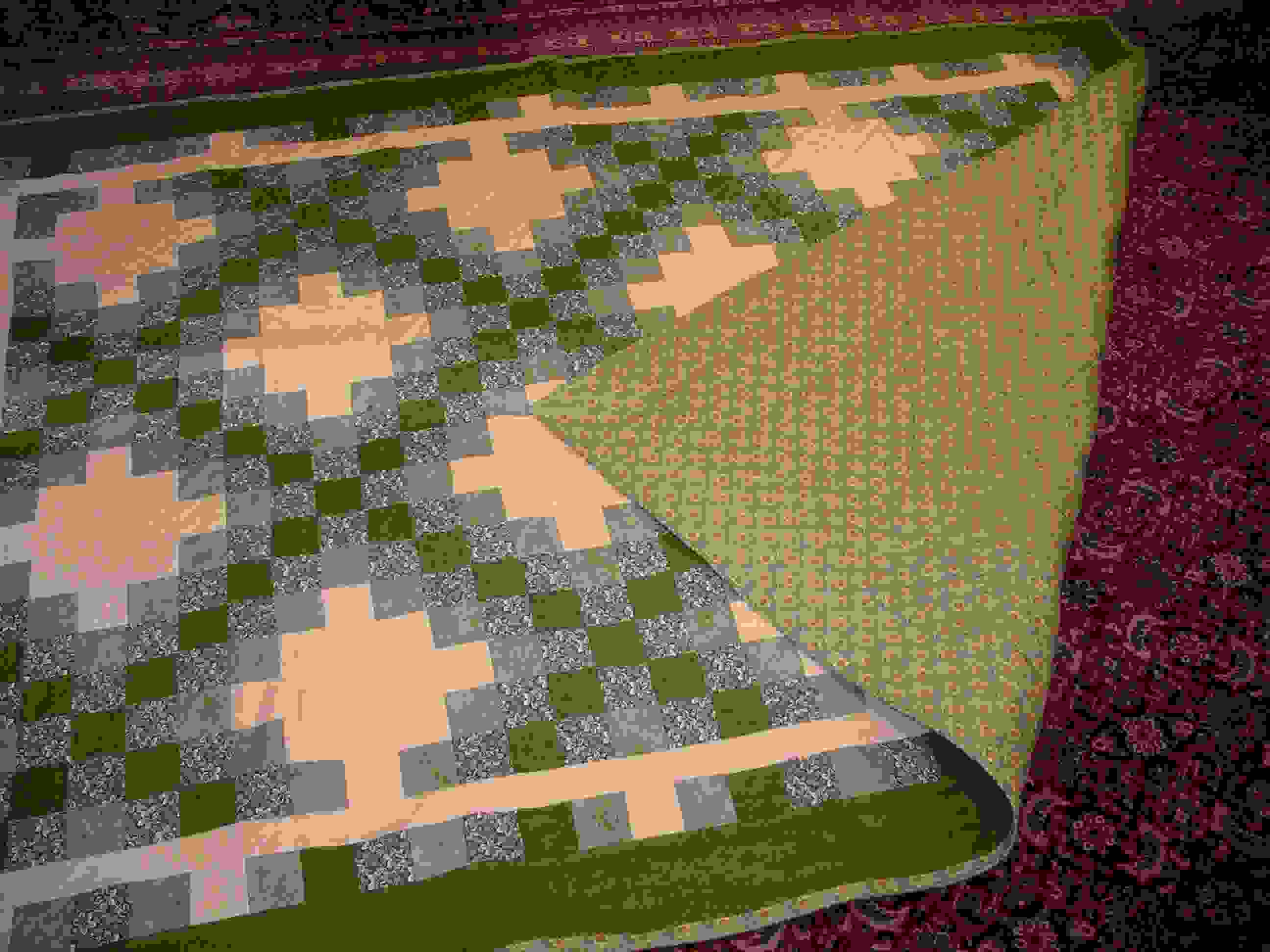 I found a delicious pale green/yellow print of tiny yellow flowers in small green squares, with a delicate hint of red. I really try to make the backing relate closely to the front, tying it all together.