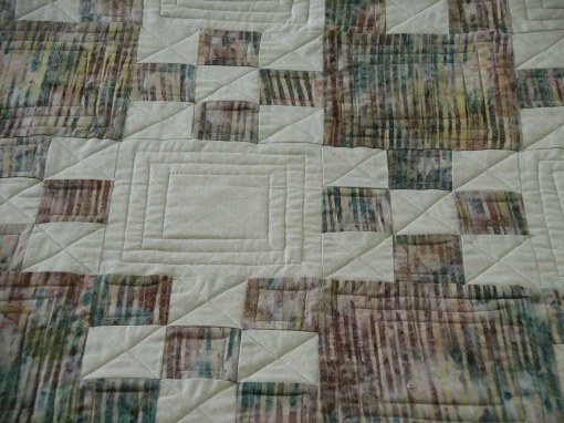 A simple arrangement of two sizes of squares, with shadow quilting, that is following the shape of the pieces, keeps it simple and elegant.