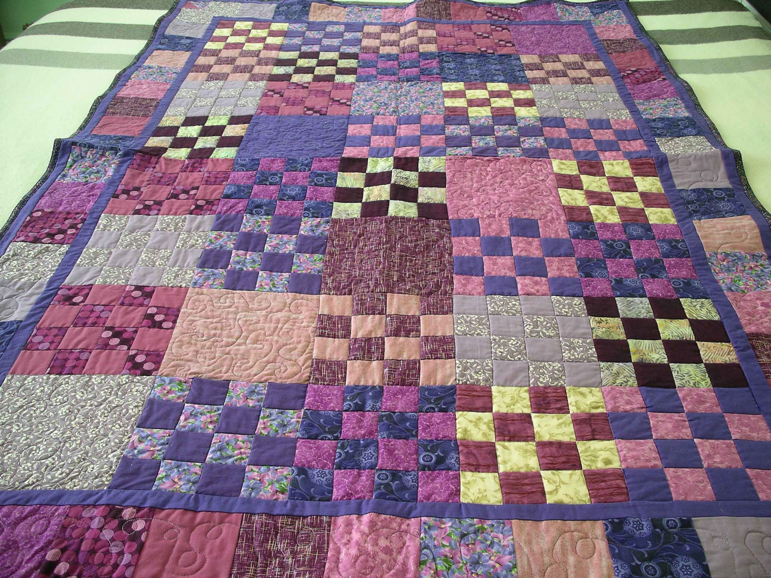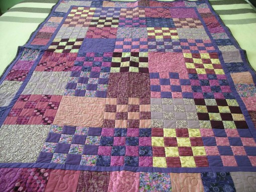 A final look at the quilting. The curvy meandering contrasts with the straight lines of the squares.