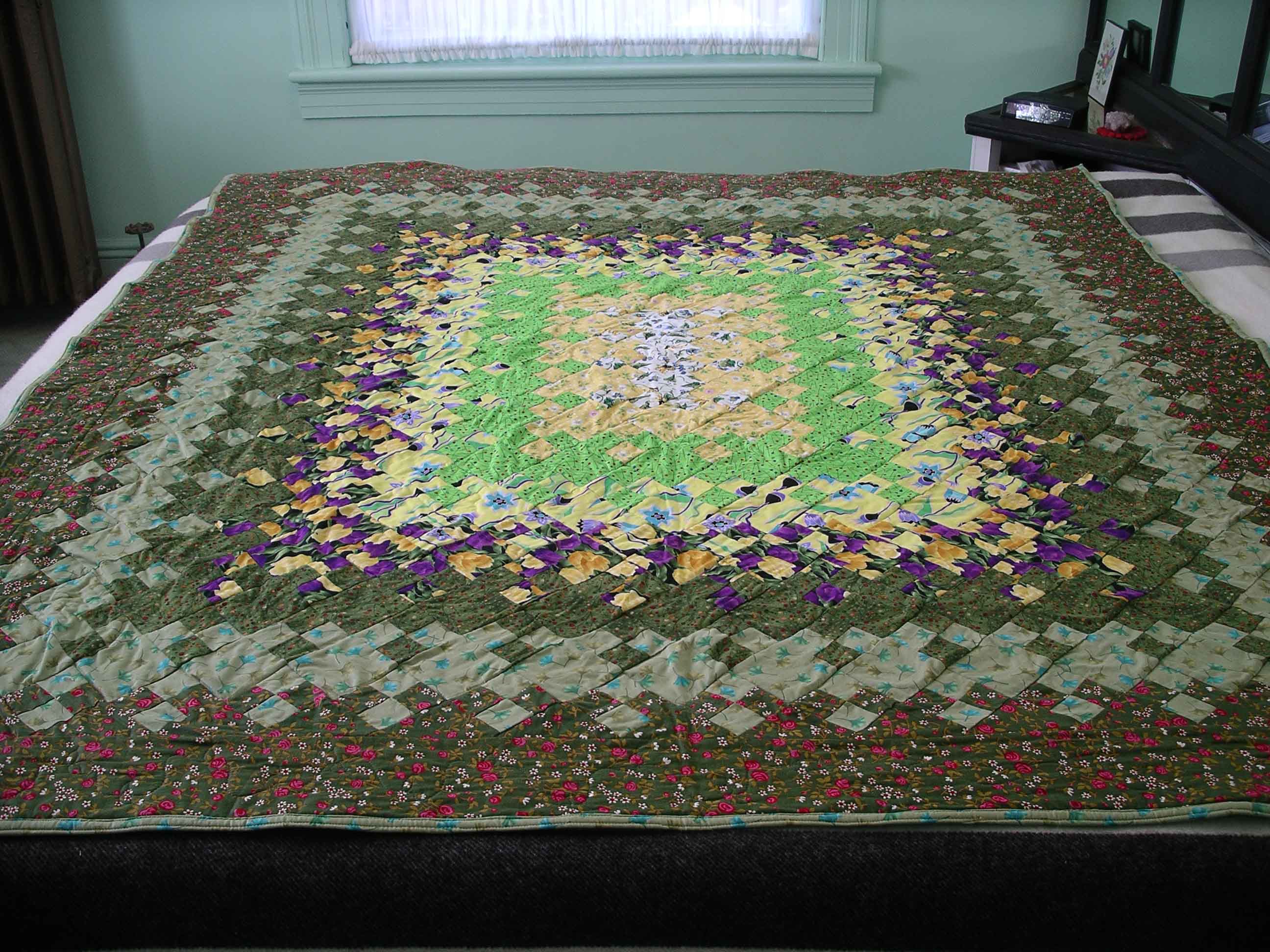 This elegant quilt starts in the center and works outward in ever-changing bands of color.l