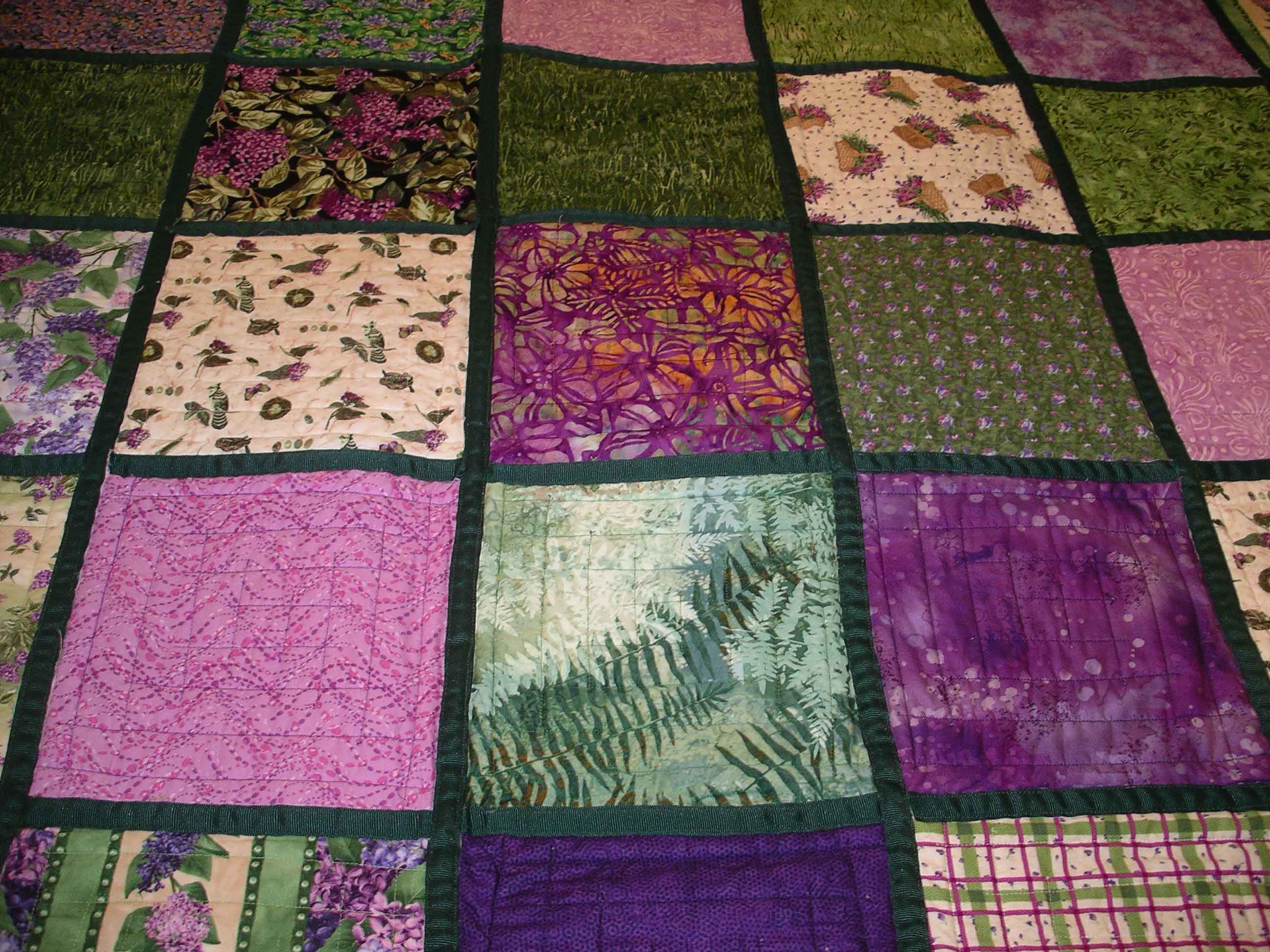 These are some of the fabrics used. It was amazing how many I found in green and purple with lilac or garden themes.