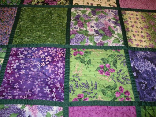 The blocks were joined on the front with a blind seam. I covered the raw seams on Side 2 with forest green grosgrain ribbon.