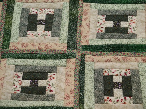 Here is a closer picture of four of the blocks, which alternate in the layout of the quilt.