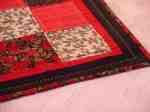 5 04 2010This piece in red, black, cream has smaller details of green and gold. This simple project is great for beginning quilters as it uses squares, outline quilting and decorative stitching
