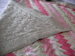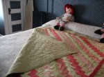 5 04 2010A soft pink and green railfence quilt for a new baby. The range of tones in the two chosen colors create movement and dynamics in this top. Railfence quilts are fun and easy to do.