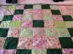3 04 2010This quilt was made as a gift for my boss’s new baby, an early project of mine. Constructed of pastel six-inch squares with some dark green accents to create nice contrast. Overall, very feminine.