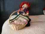 5 04 2010This is an example of a one block quilt. I used a collection of 1930’s reproduction prints in an assortment of colors and patterns to create a baby quilt that is all softness. I took all my clues from the curved shape of the pieces.