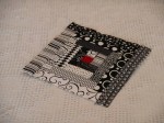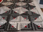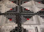 11 05 2010This is the most classic of Log Cabin patterns, light and shadow. There are eighty blocks in this quilt, the center of each, the hearth, is red. The process of making this follows the Fons & Porter method of cutting out all the size strips, and lining them up in a pizza box to stay organized. I then chain stitched the segments as they were added one by one to the growing blocks.