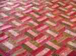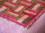 5 04 2010A soft pink and green railfence quilt for a new baby. The range of tones in the two chosen colors create movement and dynamics in this top. Railfence quilts are fun and easy to do.