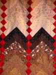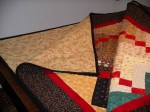 This small quilt was made from one yard of a stripped fabric, cut into strips on the bias, and pieced back together. Then it was quilted in the ditch along all the diamond shapes, giving the illusion of a pieced quilt.
