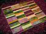 27 05 2010This quilt was a study in free motion quilting patterns which are different for each color in the quilt. I utilized a variety a soft colors in bars that reminded me of bar codes. Placing the batik strips randomly, and then making rows resulted in a pleasant, easy-on-the-eyes piece for a table top or a wall hanging.