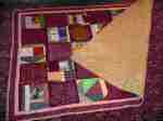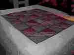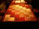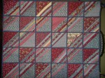 5 04 2010This quilt was made for a raffle at the school where I worked. Constructed of squares, in autumn colors. It is arranged on a diagonal to give a sense of direction and flow. The piece was a hit and made lots of money for the school.
