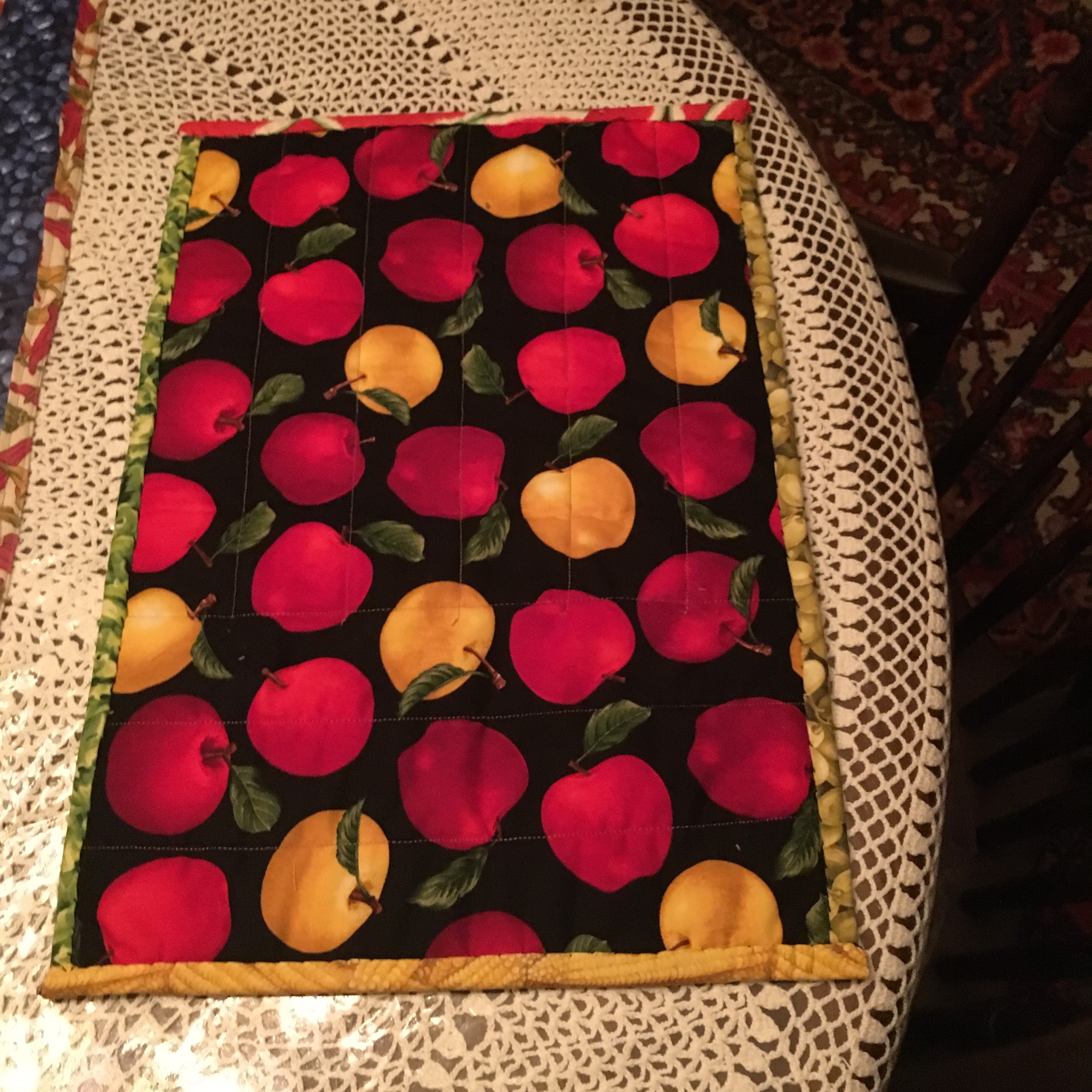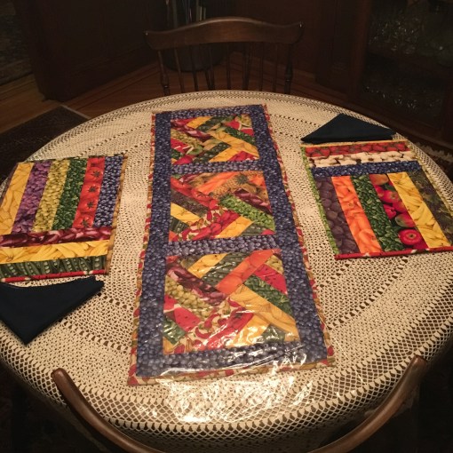 In the summer of 2015 my daughter Nikita and I enjoyed an “art week” which included painting, origami, and quilting. This project we designed together on graph paper, transferred it to large cardboard, then traced out template plastic. We each selected different fabrics from a common array, using them for different pieces. We crossed our fingers as we attempted to work out the intricate geometry. And we laughed a lot.